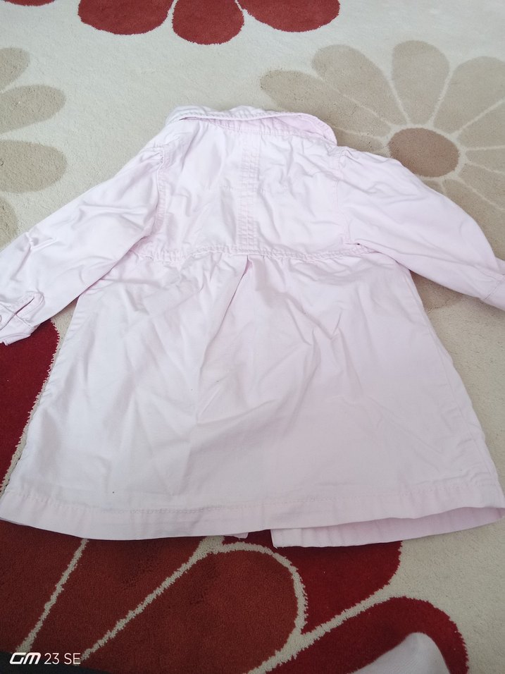 Düğmeli ön kısmı ve kesik yakası ile bol kesim kız çocuk yağmurluğu. Pastel pembe sentetik kumaştan, desensiz sade tasarım. ☔