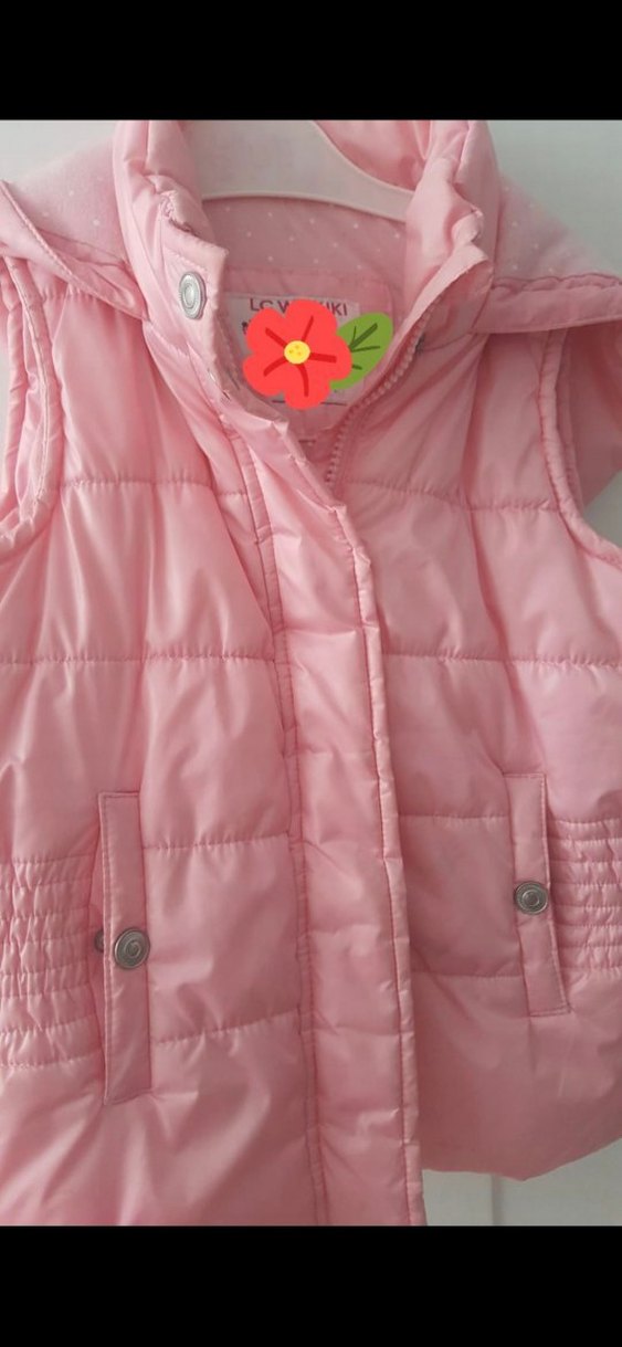 Pembe renkli, düğmeli ve kollu olmayan bu kız çocuk yeleği, yaka detaylı ve vücuda oturan kesime sahiptir. Yumuşak sentetik kumaştan üretilmiştir.