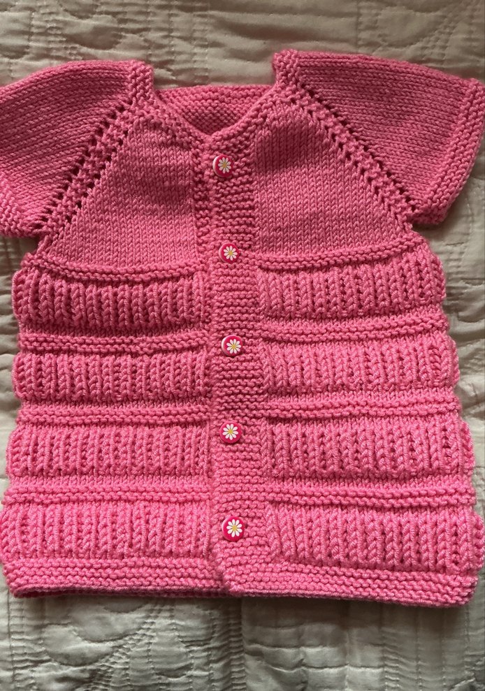 Kız çocukları için pembe renkte, örgü kumaştan yapılmış kolsuz hırka. Düğmeli, sade ve normcore tarzda, vücuda oturan kesim. Yeni örüldü