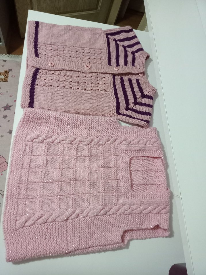 Kız Çocuk Pembe el örgüsü yelek ve süğeter