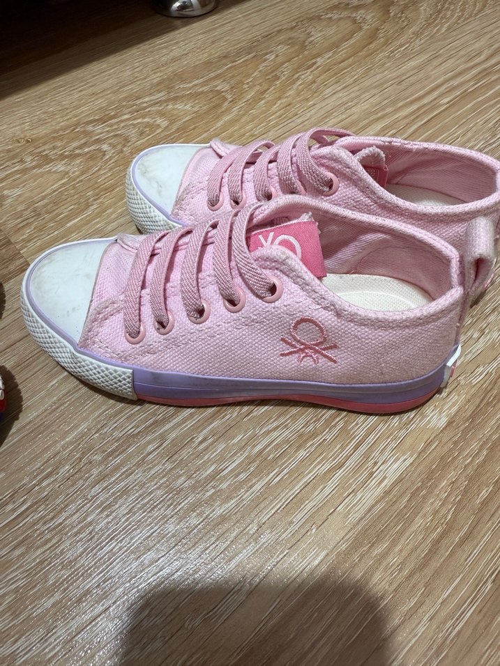 Elastik bağcıklı ve kauçuk tabanlı, pastel pembe renkli ve kırmızı renkli ayakkabı. Pembe 27, kırmızı 28 numara