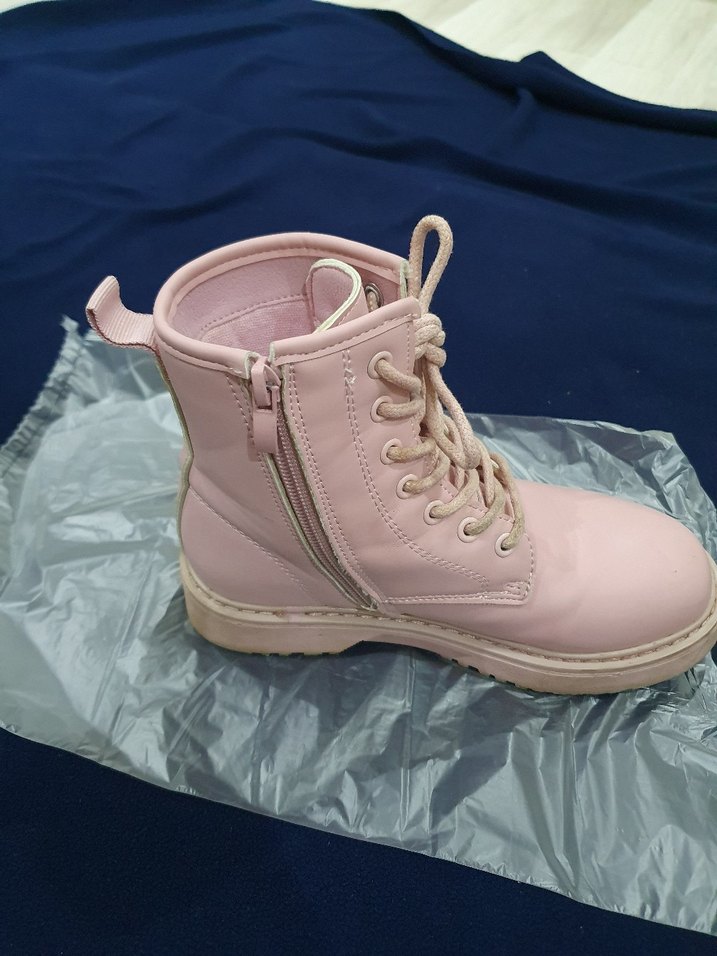 Kız çocukları için pastel pembe renkte, fermuarlı ve bağcıklı kauçuk botlar, rahat ve kullanışlıdır.