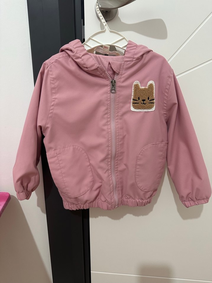 Kız çocuklar için fermuarlı, nakış detaylı pembe ceket. Yumuşak sentetik kumaştan