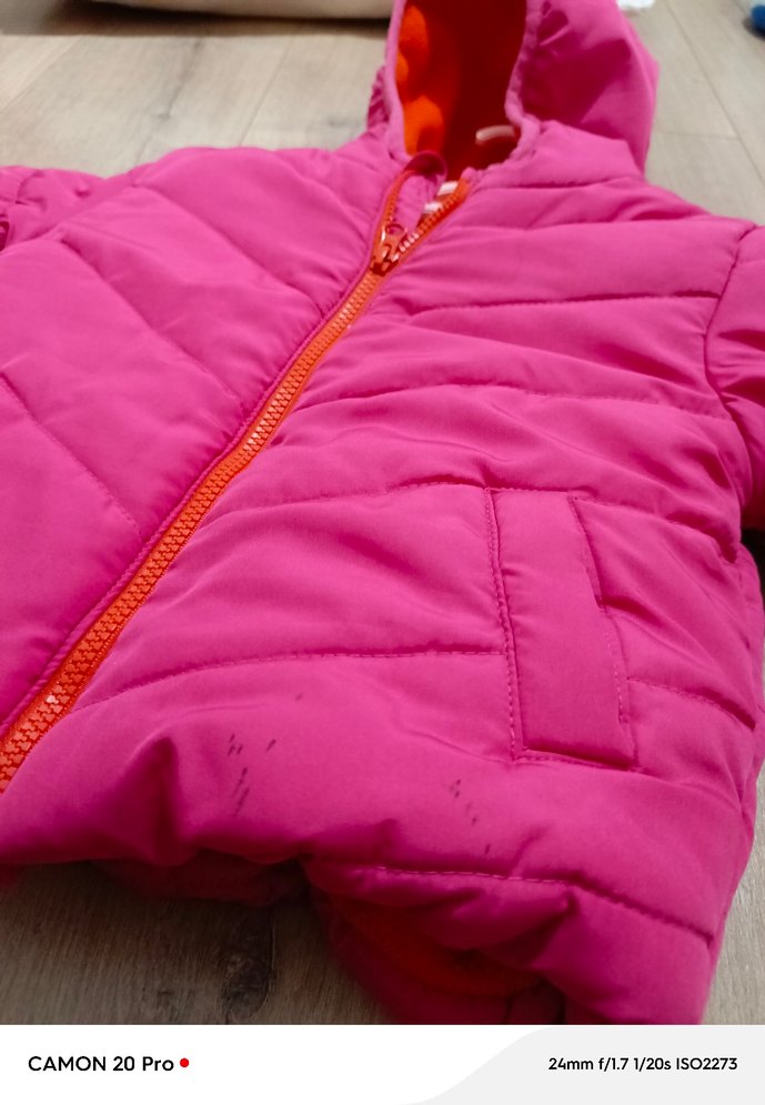 Kız çocukları için pembe, fermuarlı ve kapüşonlu, yumuşak ve sıcak kumaştan yapılmış, sokak tarzına uygun, mont. lcw 18,24 ufak kalem lekesi galiba leke var nerden oldu hiç fikrim yok