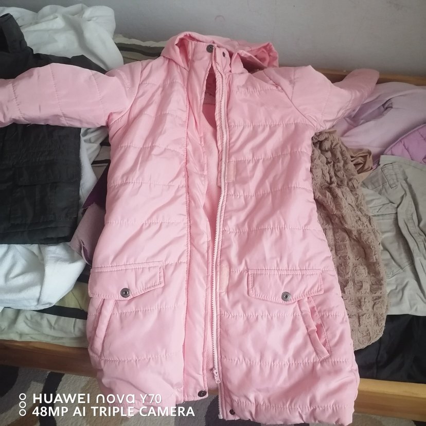 Pembe renkli, fermuarlı ve kesimli yapısıyla kız çocukları için yumuşak ve rahat bir mont. Notched lapel yakaya sahip, günlük sokak stiline uygun.