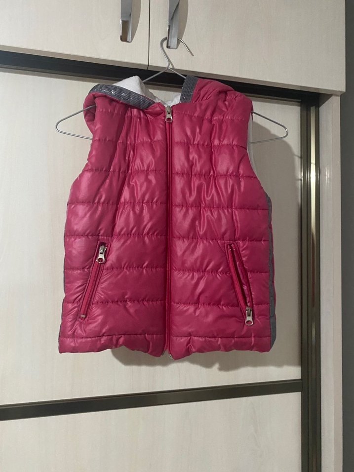 Pembe renkli, fermuarlı cepleri olan, yüksek yakalı ve dar kesim kız çocuk yeleği. Sokak stiline uygun, yumuşak sentetik kumaştan üretilmiştir.