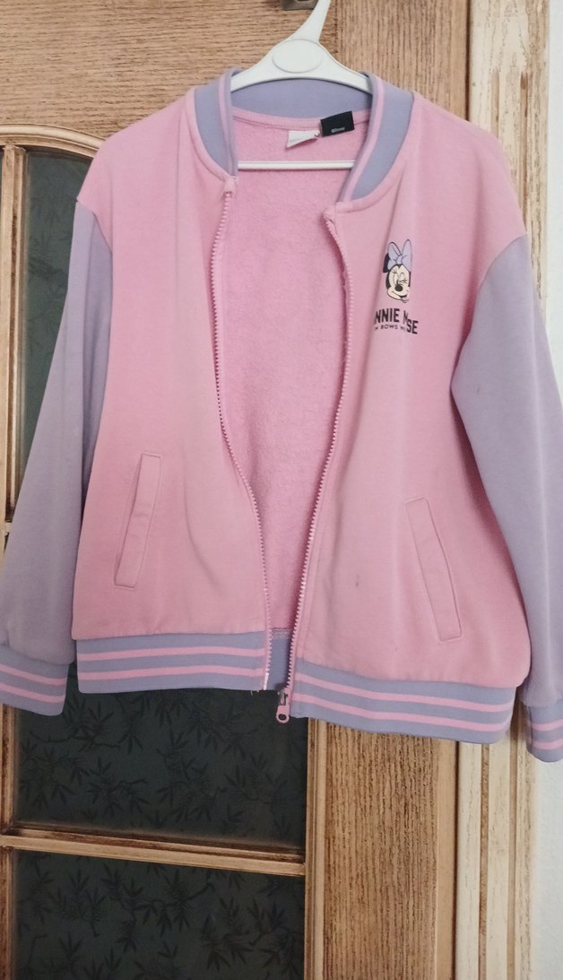 Uzun kollu, fermuarlı ve bisiklet yaka kız çocuk sweatshirtü. Yumuşak ve sıcak kumaştan, pastel pembe ve lavanta renklerinde, Minnie Mouse baskılı. Trend sokak stili için uygundur.