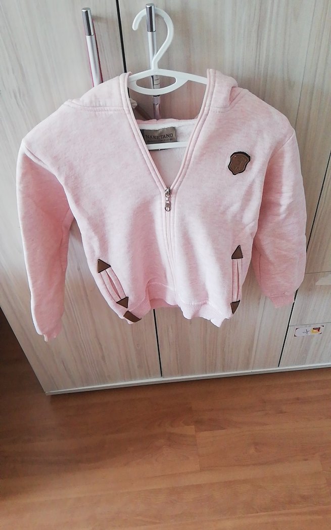 Kız çocukları için uzun kollu, yuvarlak yakalı ve fermuarlı pembe sweatshirt. Yumuşak ve sıcak kumaştan, bol kesim ve sade tasarıma sahip.