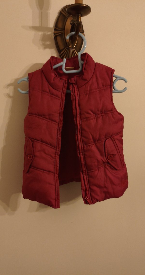 Kız çocuklar için fermuarlı, yüksek yakalı ve kolsuz pembe yelek. Yumuşak ve sıcak kumaştan, sokak tarzına uygun. 7-8 yaş.