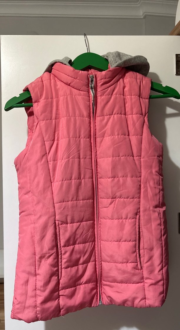 Pembe renkli, fermuarlı ve yüksek yakalı kız çocuk yeleği. Kolsuz ve vücuda oturan kesimiyle rahat ve sıcak bir dokusu vardır. Şapkası çıkarılabilirdir.