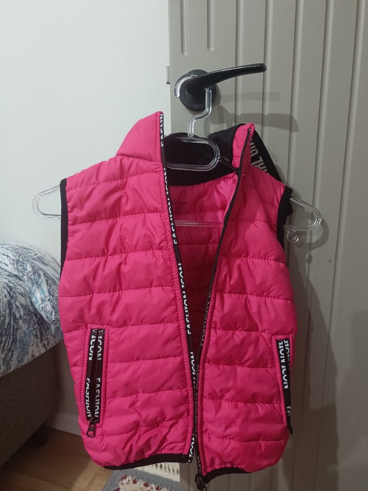 Fermuarlı cepli, yüksek yakalı pembe kız çocuk yeleği. Yumuşak ve sıcak kumaştan, trend sokak stili için uygun, dar kesim.markasi yok seçmek zorunda olduğum için seçtim.