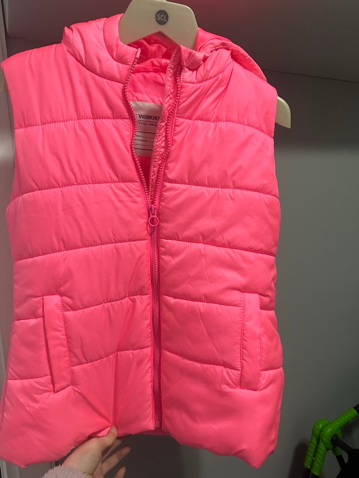 Kız çocukları için pembe, fermuarlı, yüksek yakalı ve kolsuz yelek. Yumuşak ve sıcak dokusuyla trend sokak stiline uygun, dar kesimdir. 1/2 defa giyilmiş sadece Sorunsuz sıfır gibi Lcw markalı pembe yeterli görsel ekledim Kapşonlu cepli