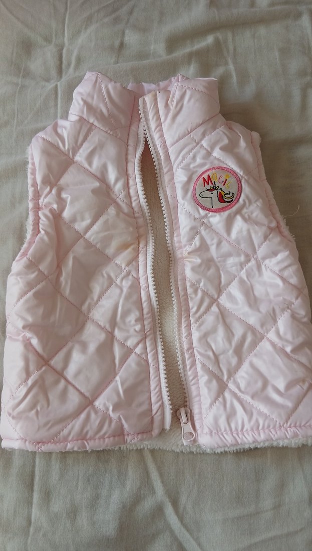 Fermuarlı, pastel pembe kız çocuk yeleği, kolsuz ve işlemeli detaylı, dik yaka ile tasarlanmıştır.