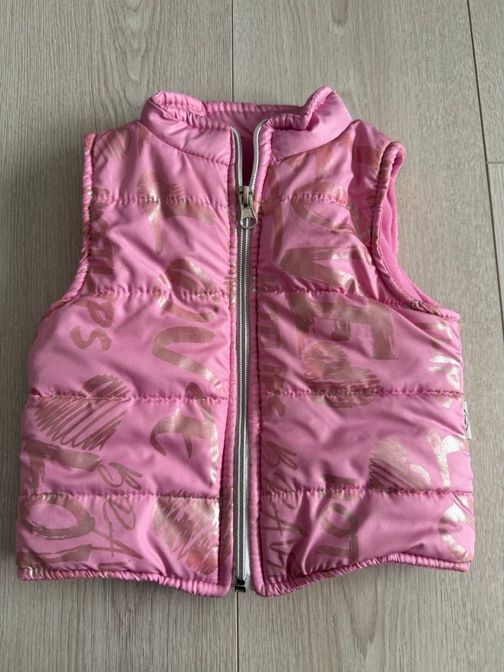 Pembe renkli, fermuarlı kız çocuk yeleği, kolsuz.Pastel tonlarda batik desenli, yumuşak ve sıcak kumaşlı, günlük sokak stiline uygun.