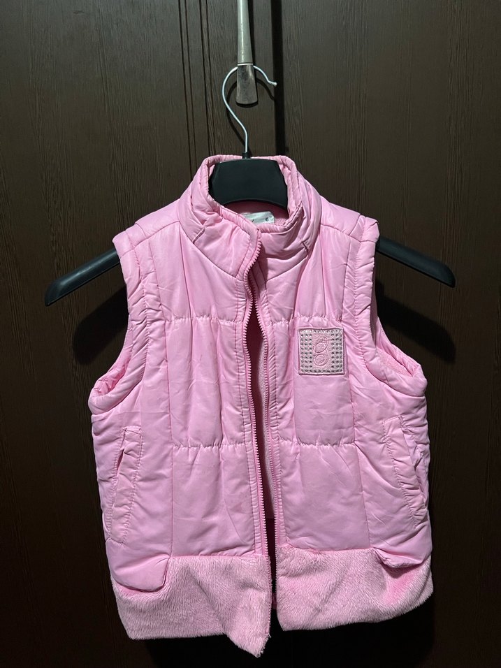 Kız Çocuk Pembe Fermuarlı Yelek polar 6 yaş kalın