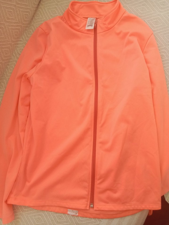Fermuarlı, yüksek yakalı ve dar kesimli kız çocuk ceketi. Pastel pembe yumuşak sentetik kumaştan, sade ve basic streetwear tarzında. xs uyumlu spor sweatshirt bir iki kez giyildi