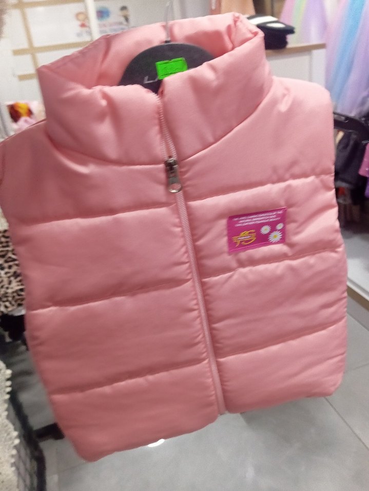 Kız çocukları için pastel pembe renkte, fermuarlı ve yüksek yakalı yumuşak kumaştan yapılmış, desen içermeyen, şişme yelek 1 ve 2 yaşları kalmıştır