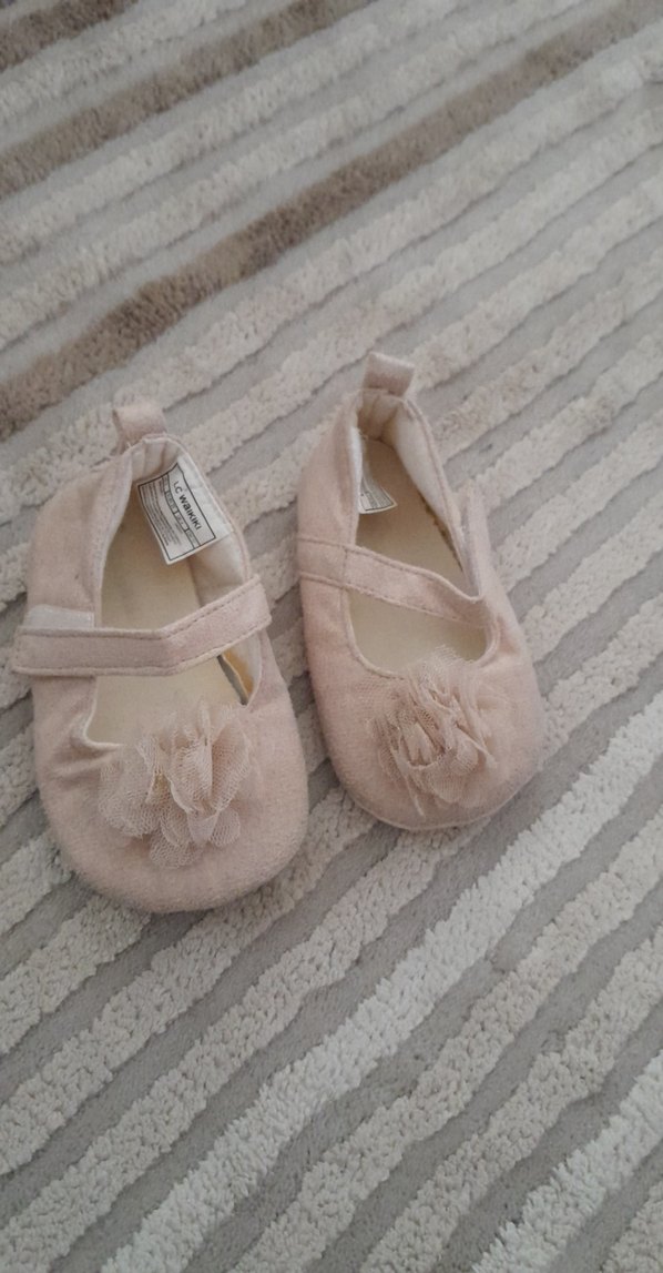 Kız çocukları için pastel pembe renkte, uç kısmında fırfır detaylı, yumuşak tabanlı babet ayakkabı. Rahat ve sade tasarım. sayili kullanildi