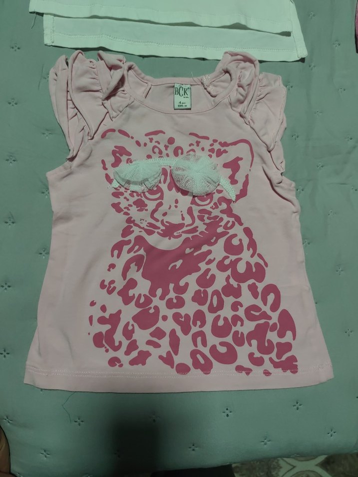 5 adet tişört fiyatı 300 TL Pembe, fırfırlı kolsuz kız çocuk tişörtü, baskılı leopar deseni ve yuvarlak yakaya sahip, yumuşak sentetik kumaştan yapılmıştır.