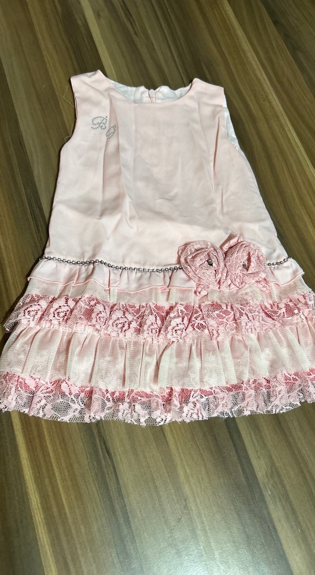 Pembe, kolsuz, kız çocuk elbisesi, fırfırlı dantel katmanlar ve nakış detaylarıyla bol kesim bohem tarz sunar. Marc’a temsilidir