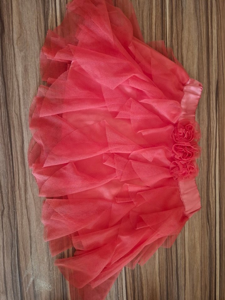Canlı pembe renkte, kat kat fırfırlı ve çiçek detaylı, bohem tarzda kız çocuk eteği. Yumuşak sentetik kumaştan yapılmıştır.