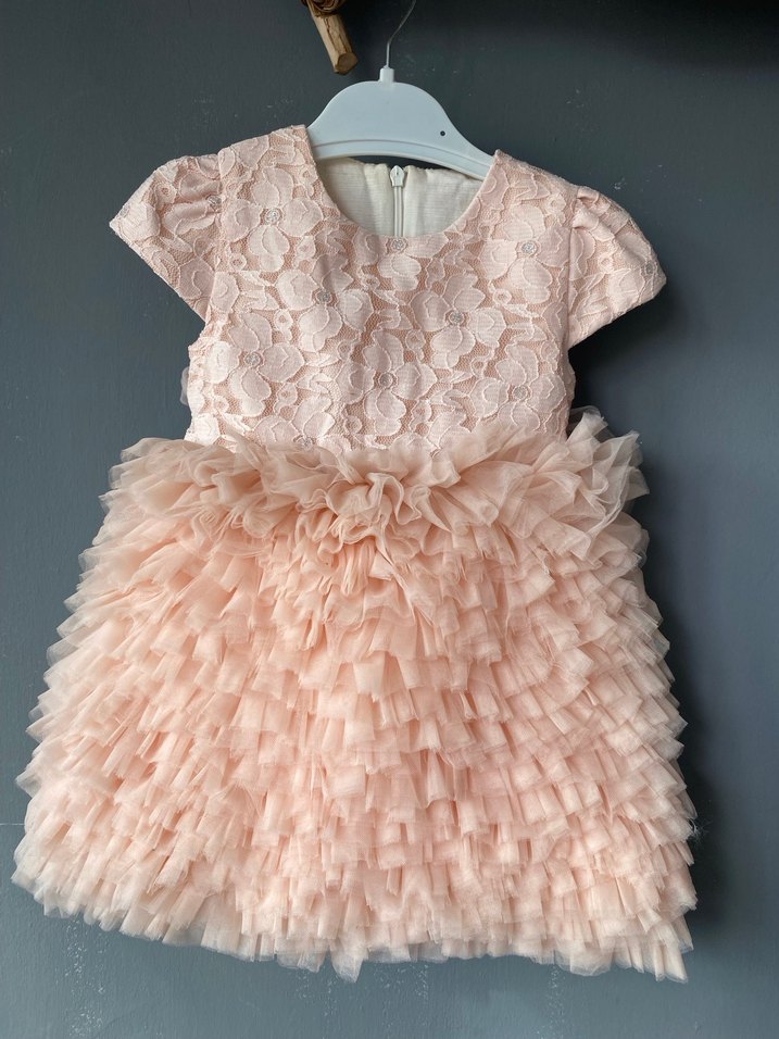 Kız Çocuk Pembe Fırfırlı Klasik Elbise