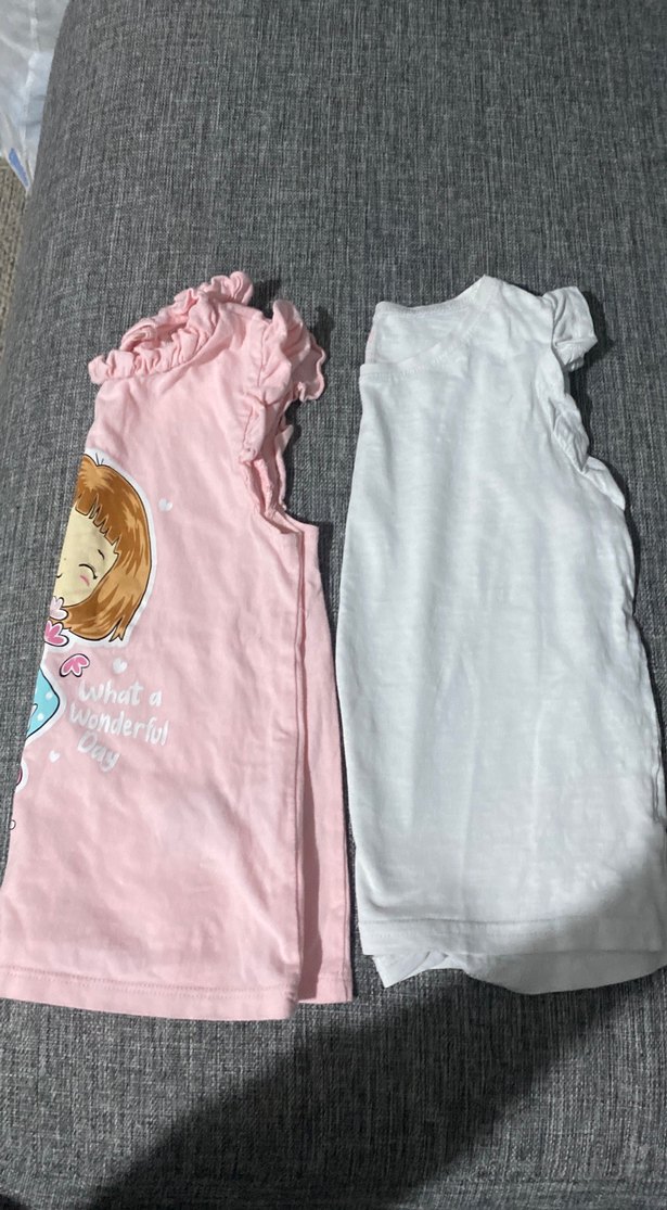 Pamuk kumaştan yapılmış, kolsuz ve fırfırlı detaylı pembe renkli, baskılı kız çocuk tişörtü. Straplez yaka ve dar kesimlidir.