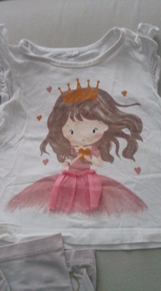 Pembe fırfırlı detaylı,, baskılı kız çocuk tişörtü. Yumuşak sentetik kumaştan yapılmıştır.