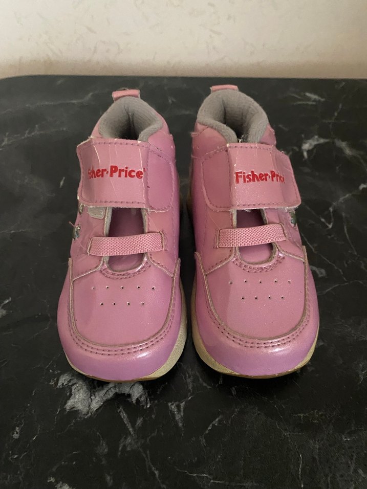 Pembe Fisher-Price kız çocuk spor ayakkabısı, cırt cırtlı ve renkli baskılı detaylara sahip. Kauçuk malzemeden, sokak stili için uygun.