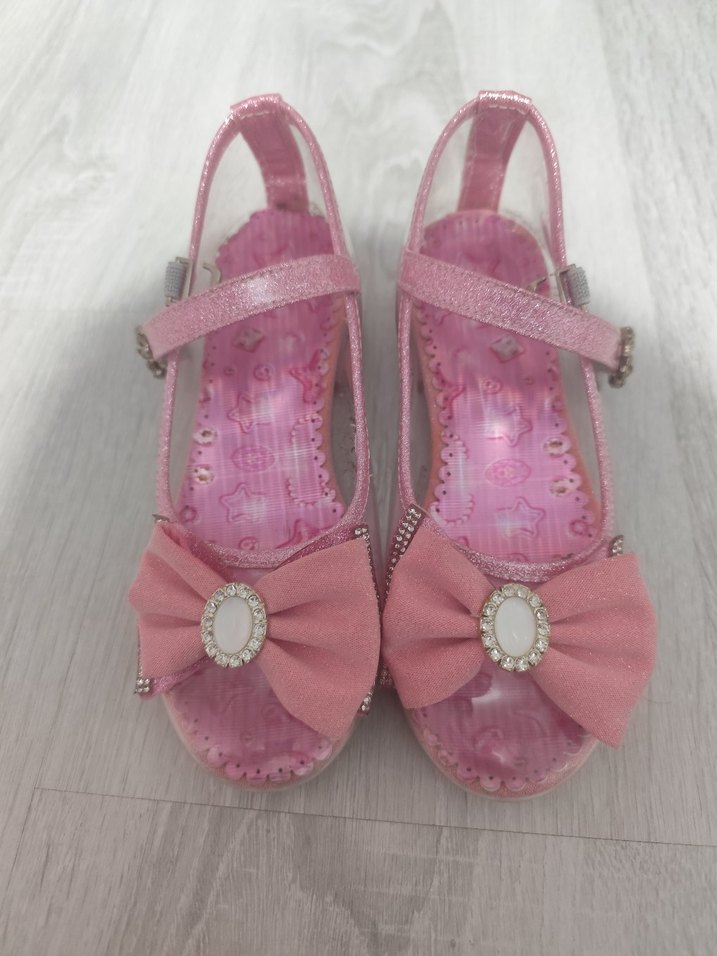 Pembe renkli, fiyonklu kız çocuk babetleri, baskılı iç tabanlıdır. Dayanıklı kauçuk malzemeden üretilmiş, klasik ve renkli bir stile sahiptir.