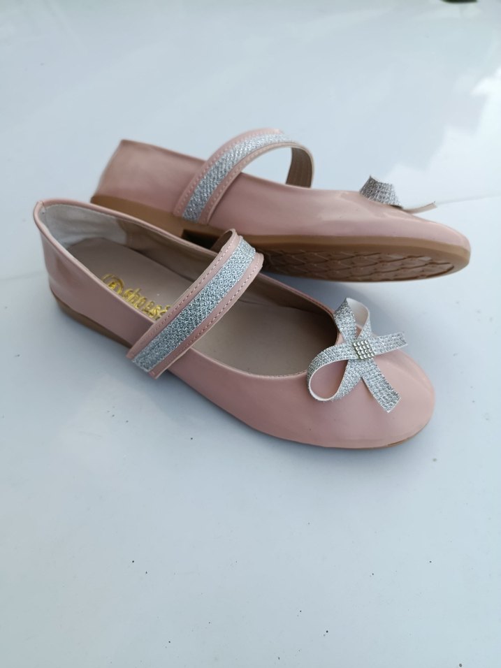 33 numara Kız çocukları için pembe renkte, yumuşak kauçuk malzemeden yapılmış, klasik ve modern tarzı bir araya getiren fiyonklu babetler.