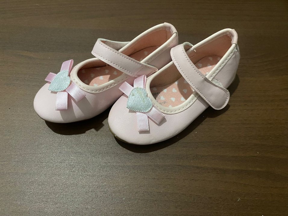Pembe, fiyonklu kız çocuk babetleri, işlemeli kalp detayıyla ve yumuşak kauçuk malzemeden üretilmiştir. Normcore tarzda, klasik zarafet sunar.
