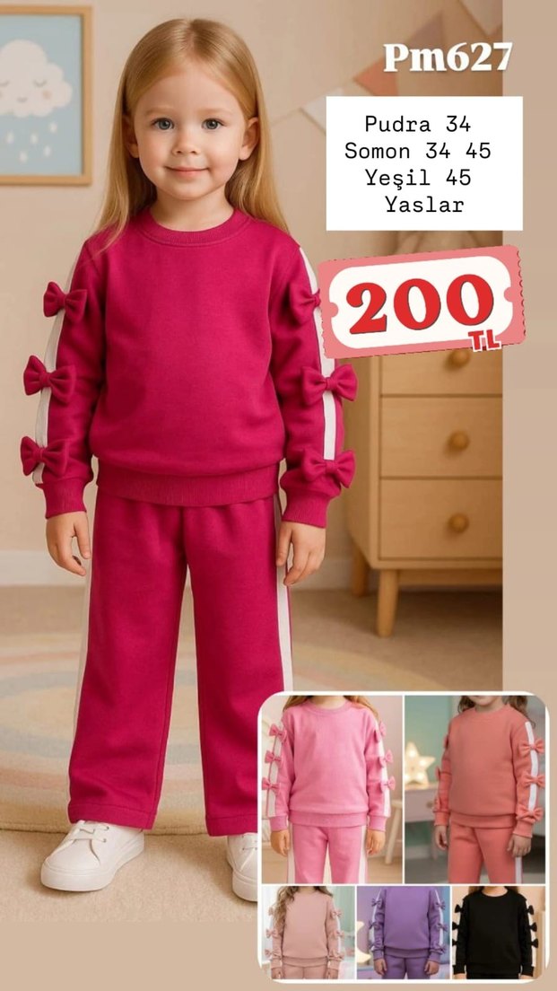 Kız çocukları için bol kesim, uzun kollu ve bisiklet yaka eşofman takımı. Yumuşak kumaştan, kollarda fiyonklu ve renkli batik desenli. Rahat ve şık. not her birinin fiyatı üstünde yazılıdır lütfen kaydırınız açıklamayı okuyunuz