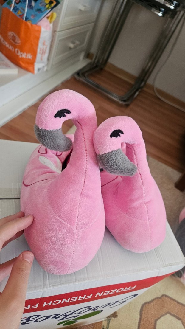 Kız çocukları için yumuşak kürk dokulu, pembe flamingo desenli fermuarlı terlik. Sokak stiline uygun cesur bir tasarım sunar. 31-32 numara