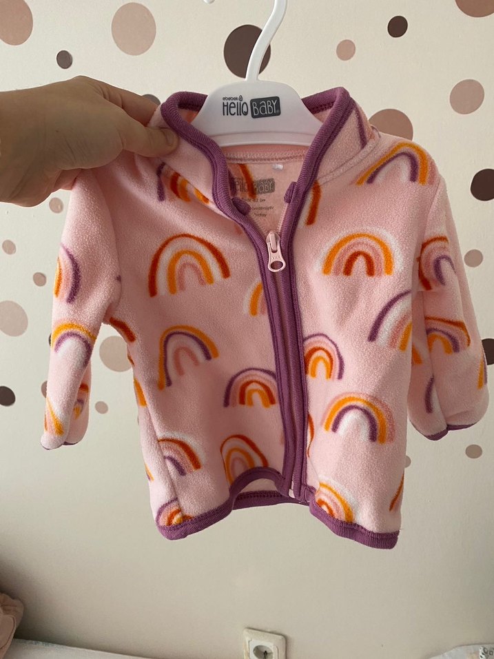 Kız Çocuk Pembe Gökkuşağı Desenli peluş Ceket