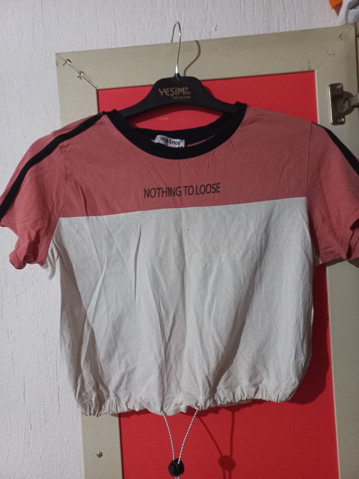 Kız çocuk tişörtü, kısa kollu ve bisiklet yaka tasarıma sahip. Pembe ve gri renk bloklu, baskılı sloganlı ve pamuk kumaştan yapılmıştır. Rahat sokak stili için uygundur. ✨