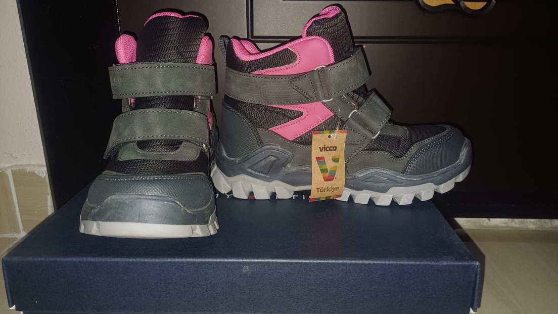 Kız çocukları için cırtcırtlı, pembe ve gri renklerde baskılı spor ayakkabılar. Kauçuk tabanlı, trend sokak stili sunar.