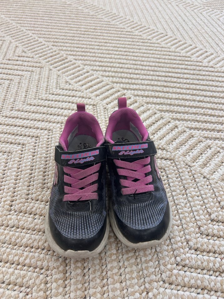 Kız çocukları için pembe ve gri renkli bağlamalı ve cırt cırtlı spor ayakkabılar. Kauçuk tabanlı, trend sokak stili için uygun.skechers marka 28-29 uyumludur ııskları calısmaktadır