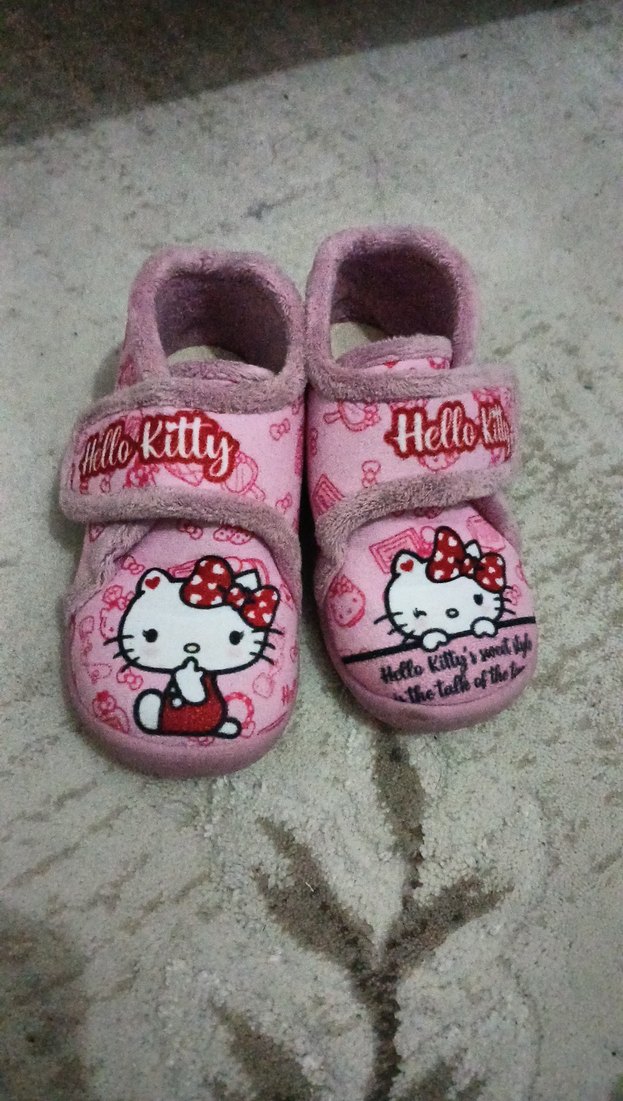 Renkli baskılı, cırt cırtlı, pembe Hello Kitty kız çocuk terliği, yumuşak ve sıcak kumaştan yapılmıştır.