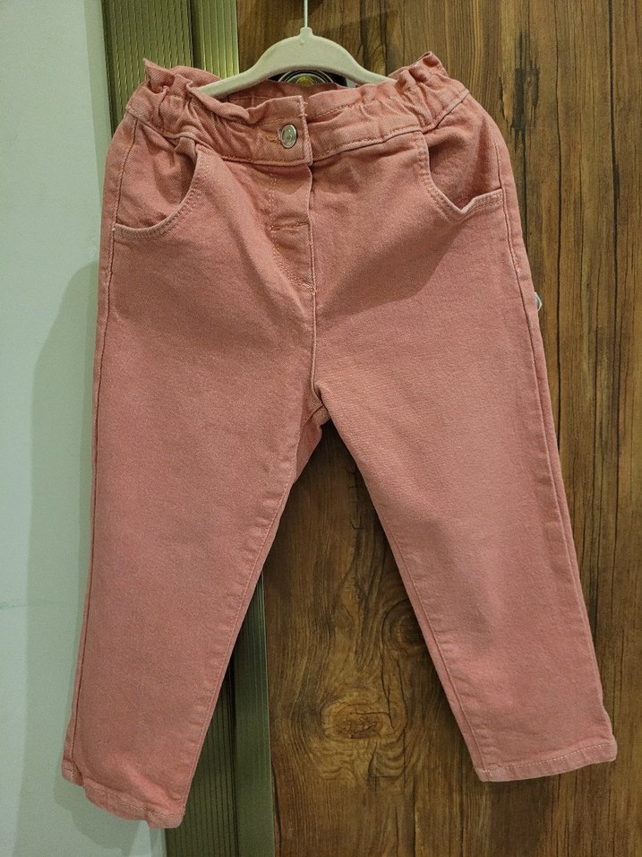 Kız çocuk pembe kot pantolon 3/4 yaş kışlık bir pantolon. Az kullanıldı. Beli lastikli.