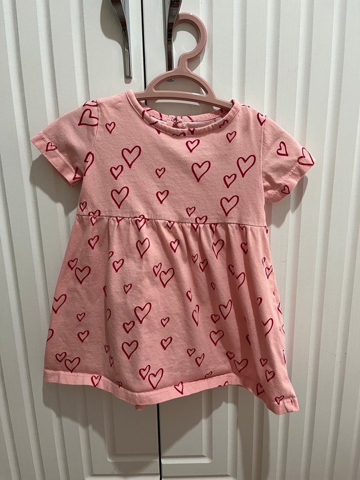 Kız Çocuk Pembe Kalp Baskılı Kısa Kollu Elbise