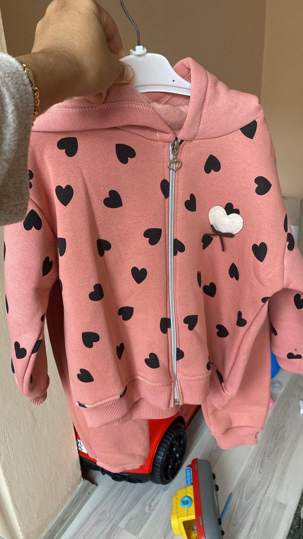 Kız Çocuk Pembe Kalp Desenli Fermuarlı Sweatshirt takım