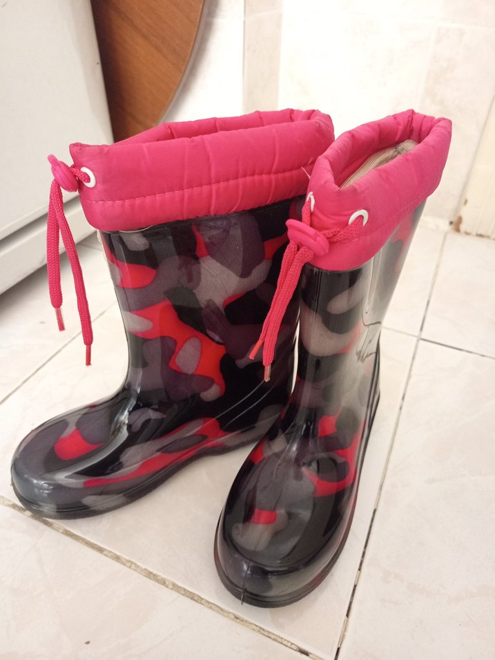 Sıfır. Pembe kamuflaj desenli, tokalı lastik botlar. Sokak modasına uygun renkli ve şık tasarım sunar. Trendsetter kızlar için idealdir. uygulamadan aldım yanlış geldi ve geri gonderemedim. hic giyilmedi kutuyla duruyor ikisi beraber satıştadır.