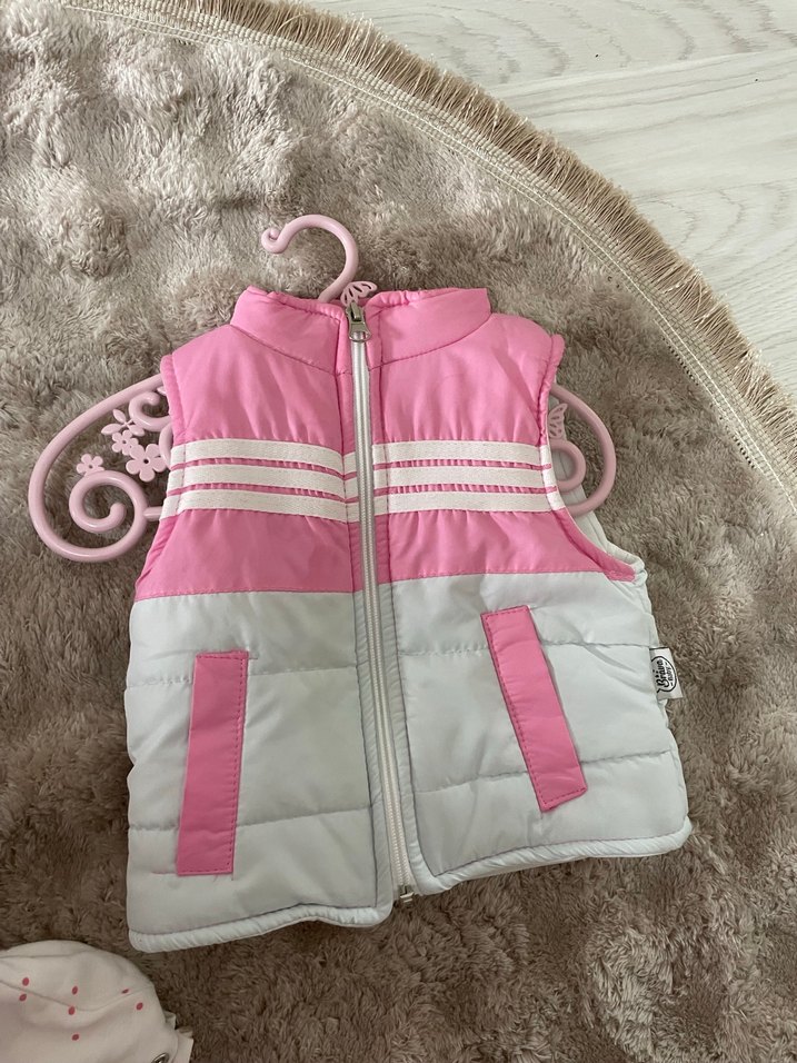 Pembe kapitone, kolsuz ve işlemeli detaylı kız çocuk yeleği. Fermuarlı ve iki ön cepli, sokak stilini sıcaklıkla buluşturuyor.