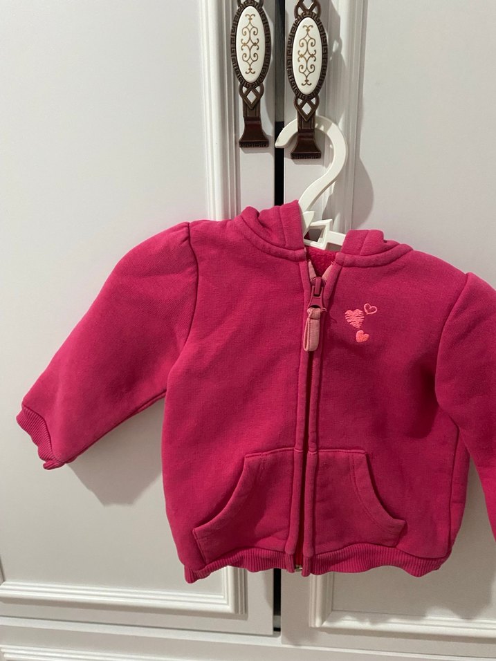 Pembe, kapüşonlu ve fermuarlı kız çocuk sweatshirtü. Yumuşak ve sıcak tutan polar kumaştan, uzun kollu ve sade tasarımlıdır.