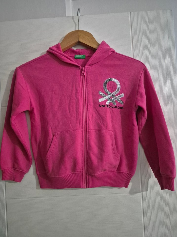 Kız çocukları için kapüşonlu, fermuarlı ve renkli baskılı, yumuşak ve sıcak kumaştan yapılmış fitted sweatshirt. Sokak stili için uygundur.