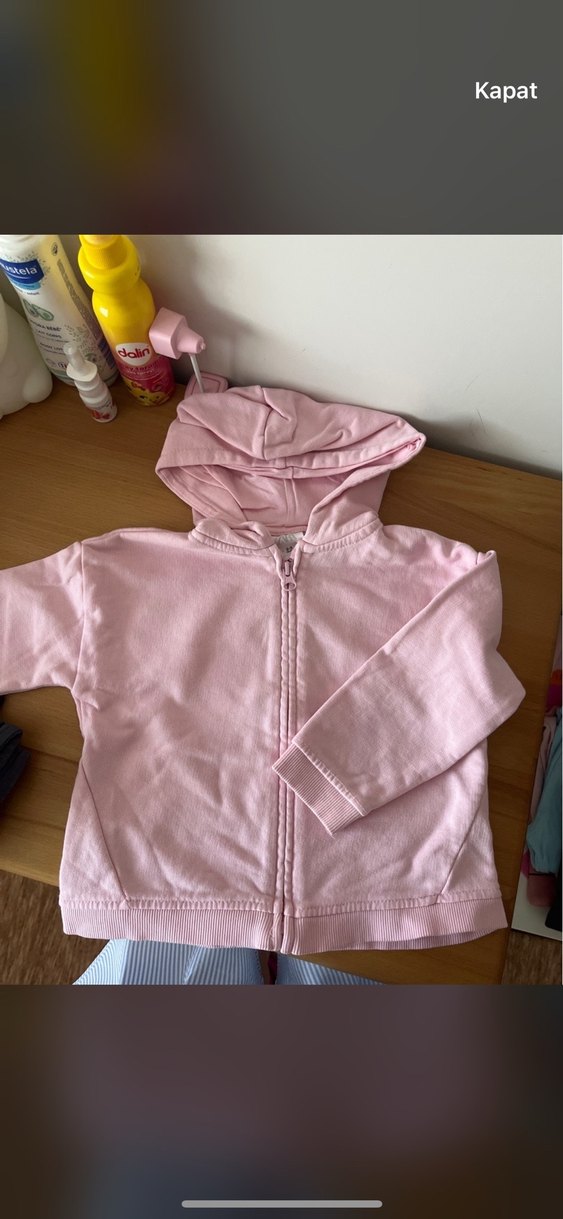 Pembe kapüşonlu kız çocuk sweatshirt, fermuarlı.