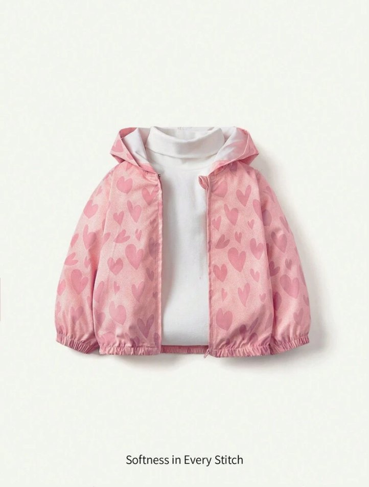Kız Çocuk Pembe Kapüşonlu ince ceket