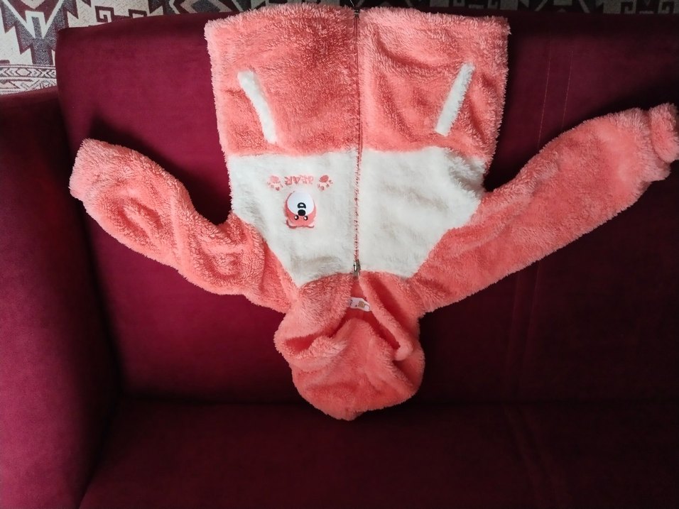 Kız çocuklar için kapüşonlu, kürklü detaylı, renkli baskılı ve yumuşak dokulu pembe ceket. Sokak modasına uygun, bir iki sefer giyilmiştir çok iyi durumda
