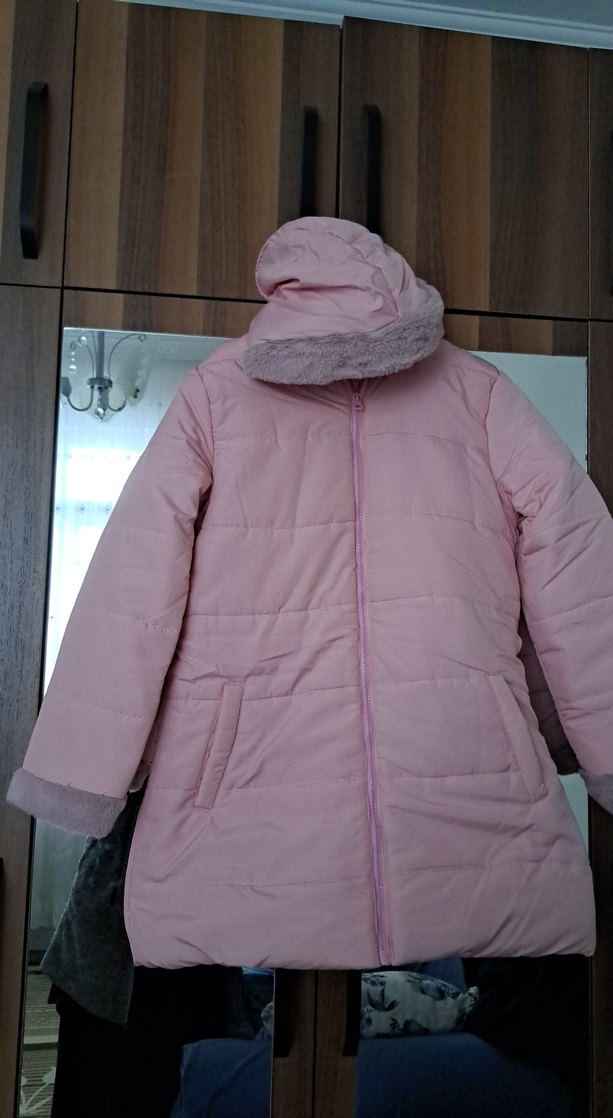 Kız çocukları için pembe kapüşonlu, kürk de1 defa kullataylı, yumuşak ve sicak bir defa kullanildi